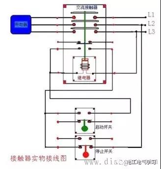 首先电源三相分别接接触器的主触点L1,L2,L3,再从接触器的T1,T2,T3接出三根线接电机的三个接线柱,以上是主电路。