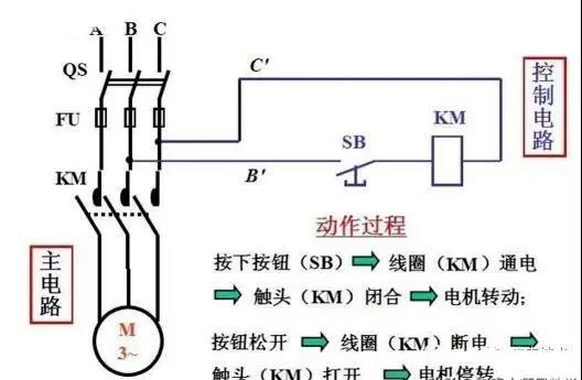 这样,当我们按下启动按钮的时候,交流接触器的主触点和辅助触点同时闭合,当我们松开启动按钮的时候,由于交流接触器的辅助触点是闭合的,所以,电流就可以通过辅助触点到达交流接触器的线圈,从而维持电源的供给,使交流接触器线圈所在的电路始终处于通路状态。
