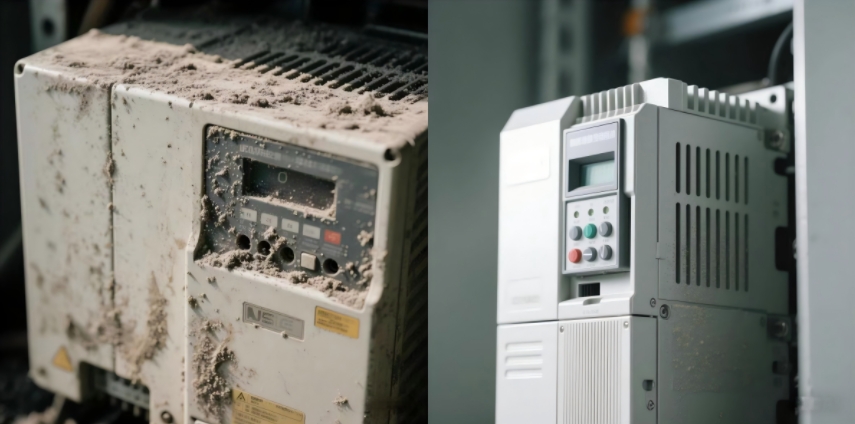 风冷型变频器:检查风道是否漏风,优化安装位置,避免热源直吹(如靠近空压机电机或排气管)。