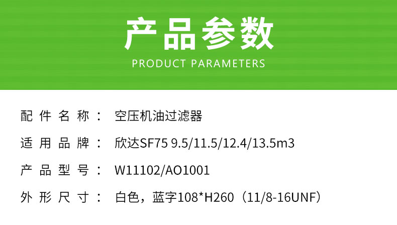 欣达SF75/9.5/11.5/12.4/13.5立方机油滤芯W11102/AO1001