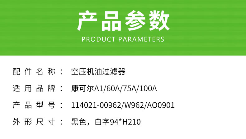 康可尔A1/60A/75A/100A机油滤芯114021-00962/W962/AO0901