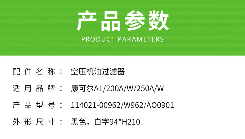 康可尔A1/200A/W/250A/W机油滤芯114021-00962/W962/AO0901