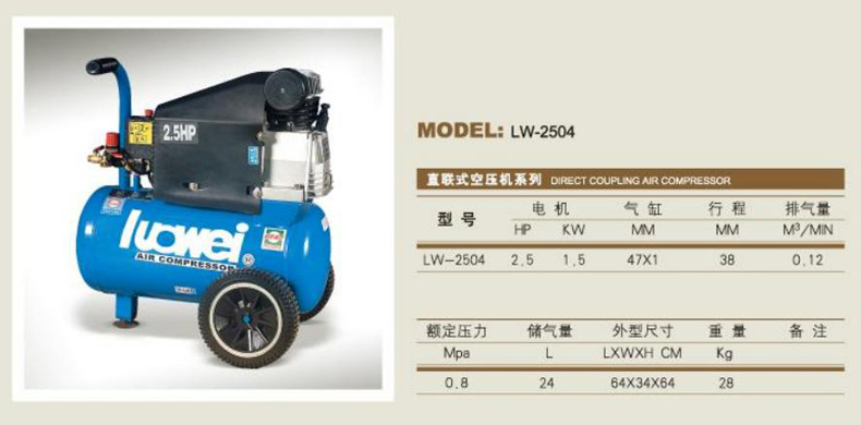罗威活塞空压机直联式空压机系列LW-2504,正品保证,持久耐用,具体价格请来电咨询!
