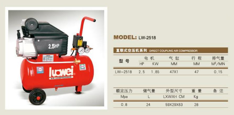 罗威活塞空压机直联式空压机系列LW-2518,正品保证,持久耐用,具体价格请来电咨询!