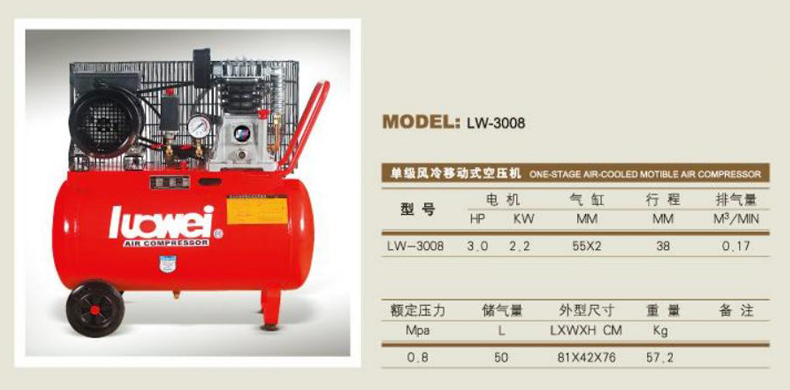 罗威活塞空压机单级风冷移动式系列LW-3008
