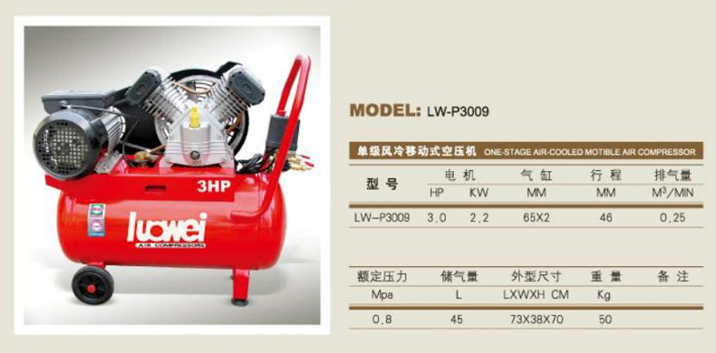 罗威活塞空压机单级风冷移动式系列LW-P3009