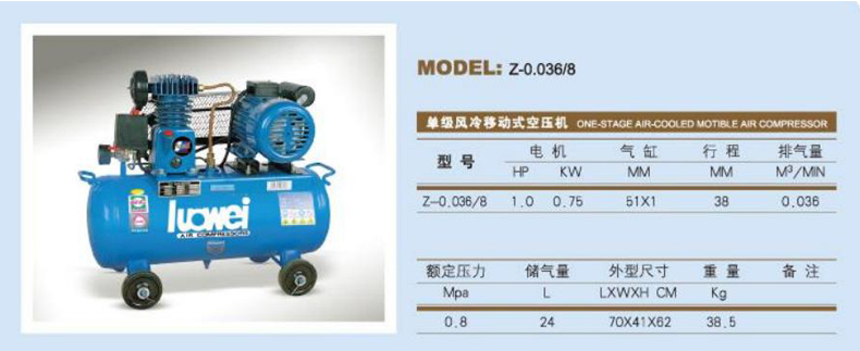 罗威活塞空压机单级风冷移动式系列Z-0.036/8,正品保证,持久耐用,具体价格请来电咨询!