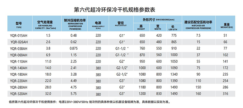 佑侨第六代超冷环保冷干机YQR-220AH