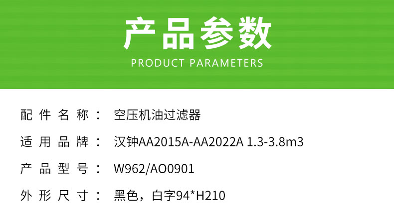 汉钟AA2015A-AA2022A/1.3-3.8立方机油滤芯W962/AO0901