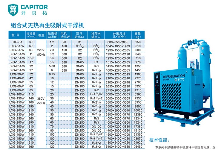 阿普达/开贝拓8.5立方组合式无热再生吸附式干燥机(普温型)LXG-8A/W
