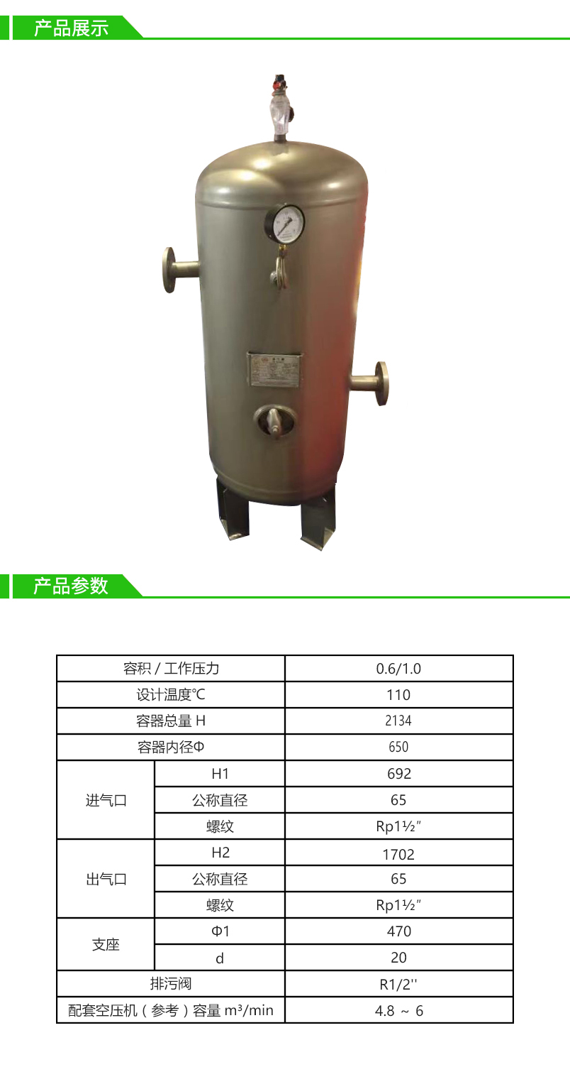 申江不锈钢(304)储气罐0.6立方10公斤-法兰
