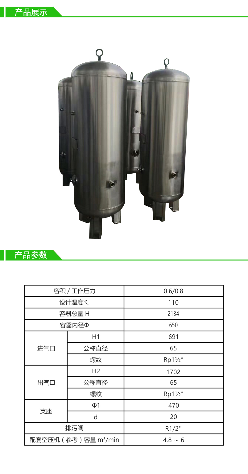 申江不锈钢(304)储气罐0.6立方8公斤,精细选材,匠心品质,专注储气罐生产、研发、制造,型号齐全,稳定耐用,安全可靠!