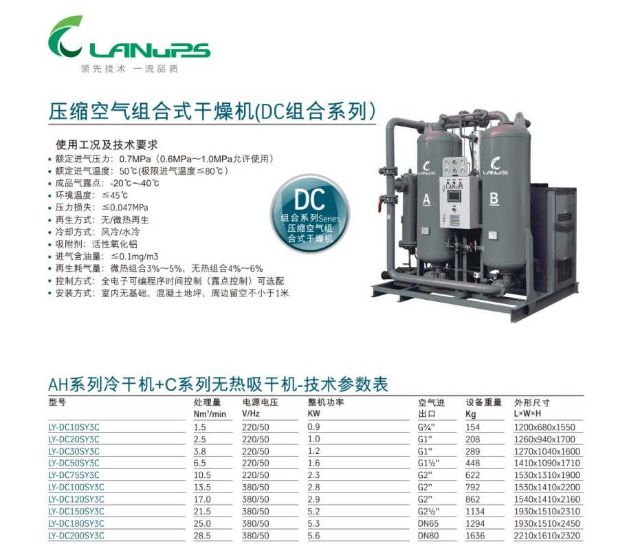 中山凌宇6.5立方LY-DC50SY3C压缩空气组合式干燥机(DC组合系列)AH系列冷干机+C系列无热吸干机