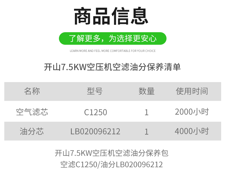 开山7.5KW空滤油分保养包C1250/LB020096212