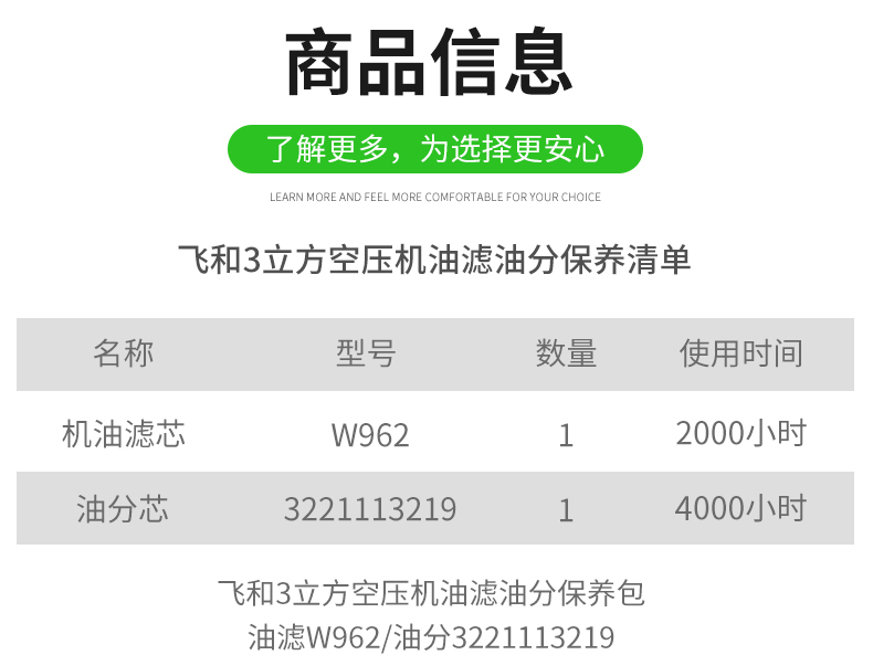 飞和3立方油滤油分保养包W962/3221113219