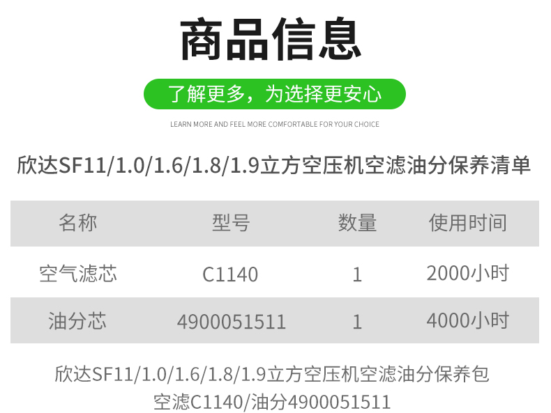 欣达SF11/1.0/1.6/1.8/1.9立方空滤油分保养包C1140/4900051511