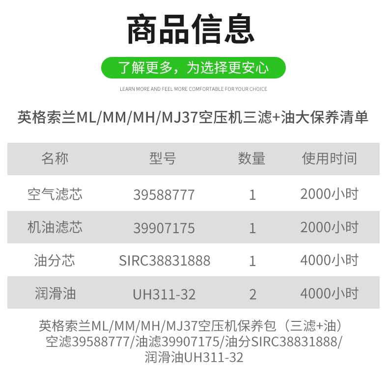 英格索兰ML/MM/MH/MJ37三滤+油保养包SIRC38831888/39907175/39588777/UH311-32