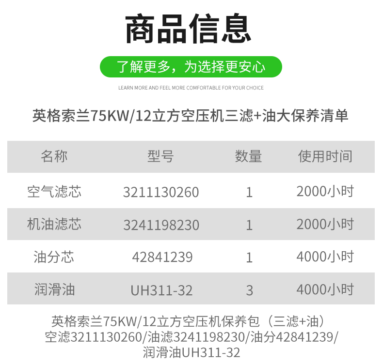 英格索兰75KW/12立方三滤+油保养包42841239/3241198230/3211130260/UH311-32