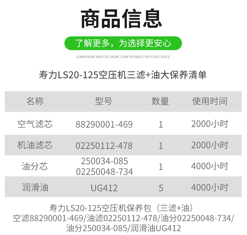 寿力LS20-125三滤+油保养包02250048-734/250034-085/02250112-478/88290001-469/UG412,正品保证,持久耐用,具体价格请来电咨询!