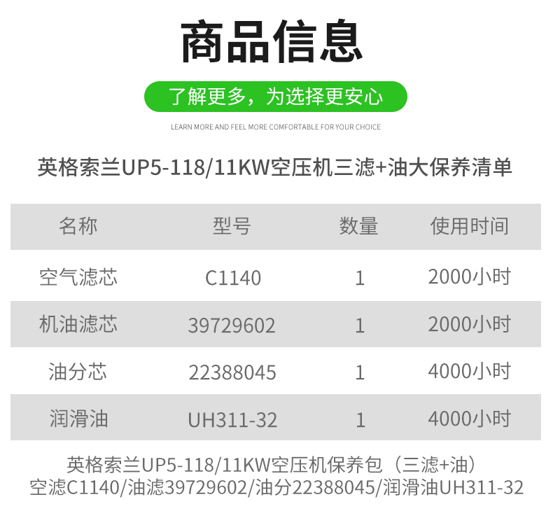 英格索兰UP5-118/11KW三滤+油保养包22388045/39729602/C1140/UH311-32
