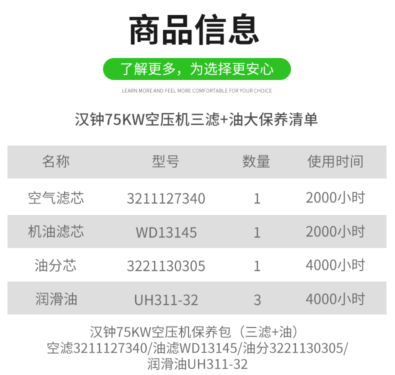 汉钟75KW三滤+油保养包3221130305/WD13145/3211127340/UH311-32