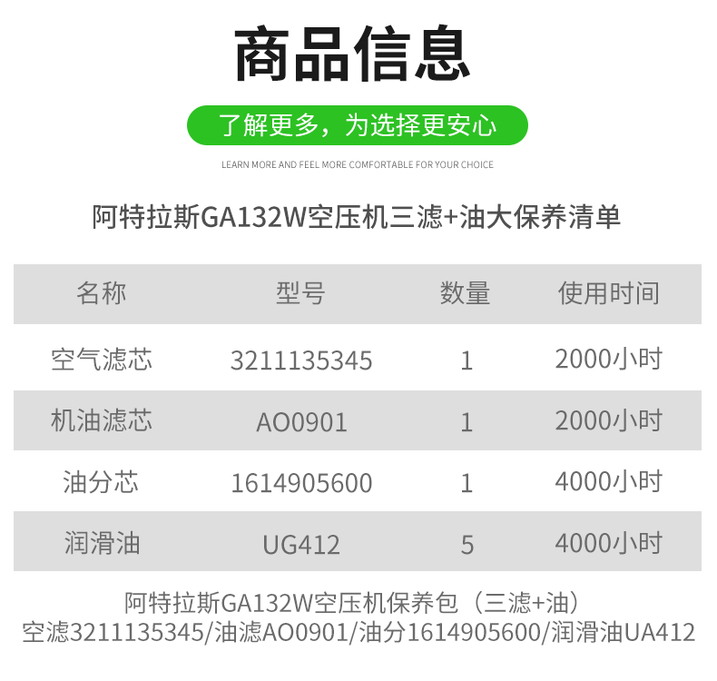阿特拉斯GA132W三滤+油保养包1614905600/AO0901/3211135345/UG412