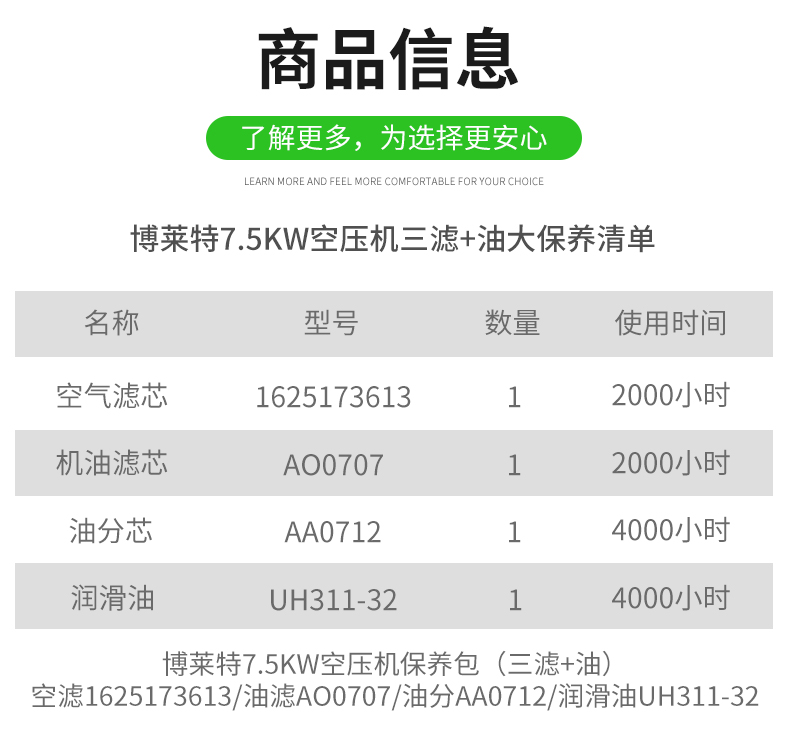 博莱特7.5KW三滤+油保养包AA0712/AO0707/1625173613/UH311-32