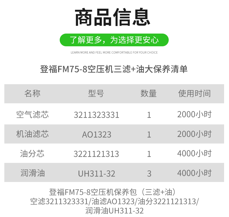 登福FM75-8三滤+油保养包3221121313/AO1323/3211323331/UH311-32