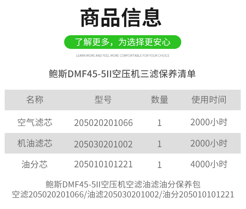 鲍斯DMF45-5II三滤保养包205020201066/205030201002/205010101221